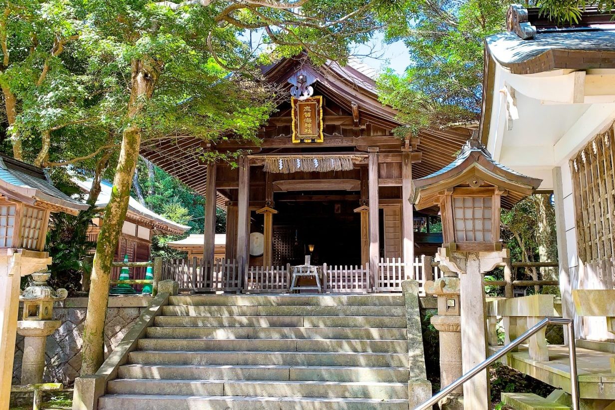 Shikanoumi Shrine is a historic shrine known as the "Head Shrine of the Sea Gods." The main deities are the Watatsumi Sanjin (Sokotsuwatatsumi, Nakatsuwatatsumi, and Omotewatatsumi), gods born from the purification ritual of Izanagi. Worshipped since ancient times as the guardian deities of maritime traffic, the shrine is enshrined on a small hill overlooking the Genkai Sea. It is said that the deities bestow divine blessings upon the shrine include protection at sea, traffic safety, regeneration and restoration, exorcism of disasters, recovery from illness, good health and longevity, safety for the home, and protection of children.