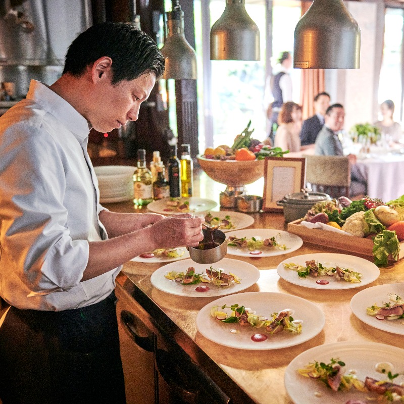 ザ・ルイガンズ. のウェディング おもてなしの心が伝わる婚礼料理 ザ・ルイガンズ. の婚礼料理は、王道フレンチに和の要素を加え、1皿の世界で「和」と「洋」を融合させた「ジャパニーズキュイジーヌ」。 幅広い世代に味わっていただけるようにと、お箸でも食しやすいコースでご用意しております。 SEASONALINGREDIENTS 旬の食材 自家農園で栽培している朝採れ野菜や、 農家との直接契約を取り入れています。 シェフ自ら産地へ足を運び季節の美味しい食材を 選ぶことから料理は始まります。 高品質にこだわるため、 素材に合わせてレシピも臨機応変。 新鮮さを追求するため関西圏内の農家にこだわり、 肉や魚介も九州・玄界灘近海のものを厳選。 TEMPERATURE 味の印象を変える「温度」 料理の温度はたった1分でも変化します。 スープの湯気の量も、ジューっという食欲をそそる音も、 ひんやりとした清涼感も、ベストの状態でなければ その印象は変わってしまう。 だからこそ、出来立てをいち早くお届けすることに 一際力を注ぎます。 目で、耳で、舌で、手で、鼻で、 五感で味わっていただくために譲れないこと。 料理はキッチンで完成するものではなく、 ゲストに届いてから完成するものだから、 私たちの料理には、作り置きという考え方は 一切存在しません。 PRIVATE KITCHEN ゲストとの距離を意識した「オープンキッチン」 召し上がるゲストの姿を近い距離で見つめながら 料理を作ることは料理に心が入ります。 キッチンの中でシェフやコックたちが微笑む瞬間 それはゲストの幸せな表情を確かめた時。 また、見つめることで食事のスピードも確認。 それによって、サービスマンとの連携や 次の料理の提供タイミングを変更できる。 一方通行にならない料理は、 オープンキッチンがあってこそ叶います。 JAPANESE TASTE 和テイストのメニュー 素材そのものの繊細な味、温度や香り、美しさ、 そのすべてにこだわるからこそご提案できる、 それが「和テイストのコース」。 「オマール海老の雲丹味噌焼き」をはじめ、 ザ・ルイガンズ.だからこそ味わえるお料理は、 お箸でもお召し上がりいただきやすく 幅広い年齢層の方にお喜びいただいております。 RESORTTASTE 彩り豊かなリゾートテイストの料理 ザ・ルイガンズ.限定のリゾートコースは 彩り華やかなリゾートの世界観を見事に表現。 海の幸もや山の幸も豊富に揃う福岡。 新鮮な九州産の食材をふんだんに使ったお料理は、 県外から列席されるゲストにも好評です。 自然の恵や四季を感じていただけ、 食材が持つ本来の味を最大級に活かした 満足感と幸福感が溢れる婚礼料理です。 MADE TO ORDER おふたりらしさにあふれたオーダーメイドコース 決まったメニューだけではなく 「おふたりらしさ」の思いをお料理に込めて。 おふたりの旅行での思い出の地の料理の再現も、 故郷の食材を使った料理を振る舞うことも。 最初からすぐにイメージが湧かなくても、 丁寧にお話をお伺いして、「これだ」というものを 試行錯誤しながら一緒に作っていきます。 どんなお料理にするか考える時間も、 おふたりが大切なゲストを想う大切な時間です。 CAKE ケーキ ザ・ルイガンズ.のウェディングケーキは、 専属パティシエによるオリジナルメイド。 トレンドのエッセンスを効かせながら、 会場コーディネートやコンセプトに合わせた、 おふたりらしいケーキをお作りします。 DESSERT FINGER FOOD デザート&フィンガーフード 手軽に食べられて美味しく目にも楽しい デザート&フィンガーフードは、 パーティーを盛り上げるアイデアのひとつ。 ウェイティングスペースを華やかに彩ります。 ウェルカムドリンク片手にセンスフルな演出で、 心に残る忘れられないパーティーを叶えます。 party reportパーティーレポート 【NEW!】「感謝を伝えるおもてなし」一緒につくるウェディング 【NEW!】和と洋、カジュアルも格式も楽しめる特別な結婚式 【NEW!】「思いを言葉にして届ける」 トワイライトウェディング センスが輝く海外のような憧れのガーデンウェディング 「海と緑」「和と洋」魅力溢れる自由なウェディング ウェルカムパーティーでゲストと笑顔溢れるウェディング おふたりのセンスが光るおしゃれなガーデンナイトパーティー 感謝を伝えるおもてなしが詰まったナチュラルウェディング 唯一無二のロケーションで過ごす憧れのガーデンウェディング ゲストと思いで繋がるアットホームウェディング 会場内にお写真を飾って特別な空間に<ガーデン挙式から始まるセンスフルWEDDING> 前撮りから海と緑のロケーションを満喫<ゲスト参加型 みんなで作るWEDDING> マリンワールド大水槽前での幻想的な挙式<お子様ゲストも一緒に楽しむWEDDING> 想いをかたちにした一日<ゲストとの繋がりを感じるWEDDING> 大切な人達と過ごす憧れの時間<愛犬もお子様ゲストも一緒に楽しむWEDDING> 一覧を見る THE LUIGANS WEDDINGザ・ルイガンズ.福岡での結婚式関連情報 PLAN・PRESENT プラン・特典 CEREMONY 挙式 BAN