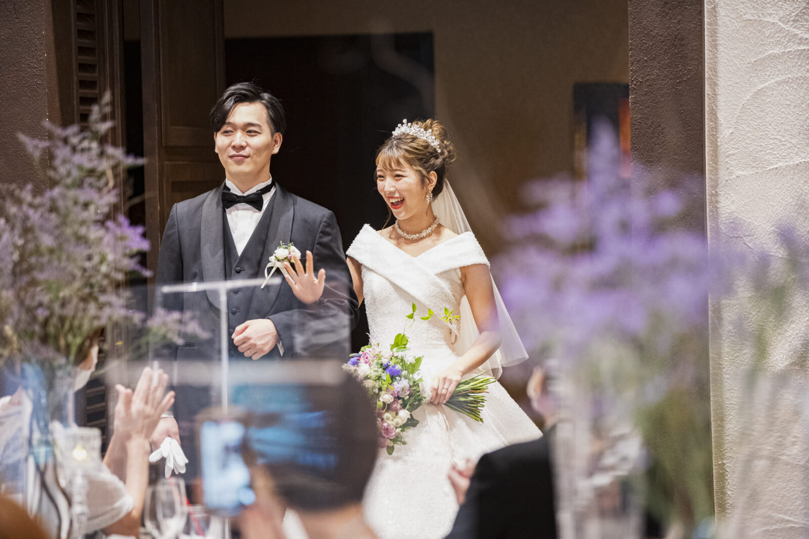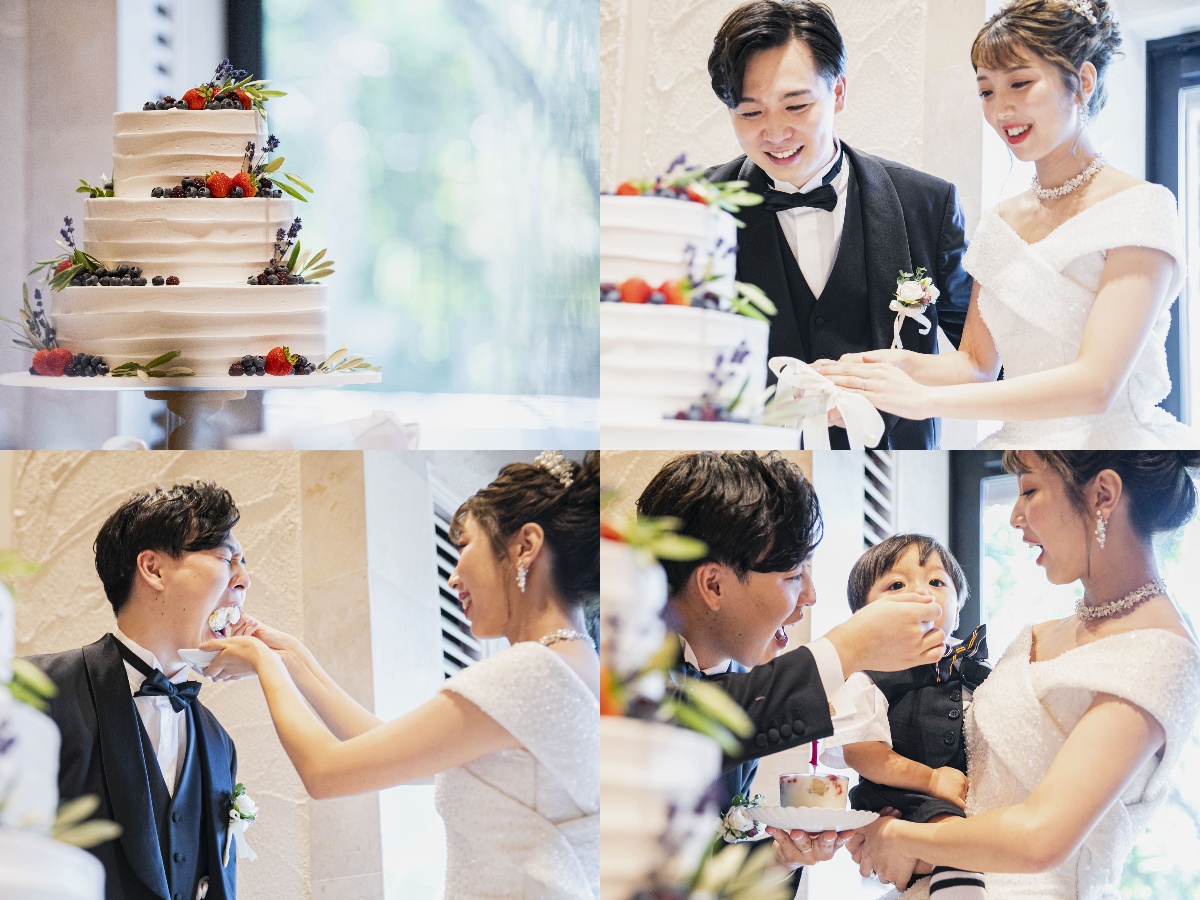 〈9月 バースデーウェディング/61名〉#チャペル神前式 #パンパスグラス #かごブーケ 披露宴会場 : THE GRAND GARDEN 1 挙式スタイル : 神前式 参列人数 : 61名 -ceremony- 日本の伝統的な挙式である神前式を選ばれたおふたり 鳥飼八幡宮様による本格的な神前式が、ルイガンズのミュージックホールにて執り行われました 黒紋付の正装と、白無垢にピンクとグリーンの小物を合わせた上品さのなかに可愛らしさを取り入れたコーディネートでお式を迎えます ご結婚式当日は、おふたりの大切なお子様の1歳のお誕生日でした ウェルカムグッズにはHAPPYBIRTHDAYのバルーンとタペストリーでコーディネートして お待合からゲストに楽しんでいただけるよう、自由に撮影できるチェキもご用意しました -first meet- 挙式のあとは、おふたりだけのファーストミートのお時間 紋付袴からタキシードへ、白無垢からウェディングドレスへ、と和から洋へ雰囲気をがらりと変えました お衣装はオフショルダーのプリンセスドレスにティアラを合わせた、ロイヤルで高貴な雰囲気に -flower- メインテーブルは月形のアーチタイプに、新婦様の大好きなパープルをテーマにしたおふたりらしい会場 パンパスグラスにコチョウランを合わせ、ナチュラルさと上質感をミックスさせたこだわりの詰まったコーディネートです 『ゲストと近い距離で楽しみたい』という想いからソファーをメインに、ゲストテーブルも遮らないよう高さを出して目線の上にお花がのぞくストレートタイプに -cake ceremony- いちごとベリーにハーブやお花をプラスして、会場のコーディネートに合わせた彩り豊かでナチュラルなケーキ 健やかに育ってくれたお子様のお披露目も込めた、家族3人で迎えるご結婚式だからこそ ケーキセレモニーではお子様の1歳のお祝いを兼ねてお誕生日ケーキをご用意して、パパとママからたっぷりの愛を込めてバースデーバイトをしました お色直しでは、お花のビジューとラメが散りばめたイエローとエメラルドグリーンのグラデーションドレスを 自然光があたるたびに、新婦様の動きに合わせてビジューがきらきらと輝きます ブーケは変えずに、かごバックにいれてキュートにイメージチェンジ 木漏れ日が差し込む緑いっぱいのプライベートガーデンでは、久しぶりに会ったご友人やご家族と一緒にデザートビュッフェを囲んでお写真を撮ったりとゆったりとしたお時間を過ごしました 今日の結婚式をとっても心待ちにしてくれていた大好きなおばあちゃんへ、感謝を込めて花束を贈りました 幸せ溢れるおひらき後の2ショット おひらき後はライトアップされたガーデンで、余韻に浸りながらフォトタイムを過ごしました
