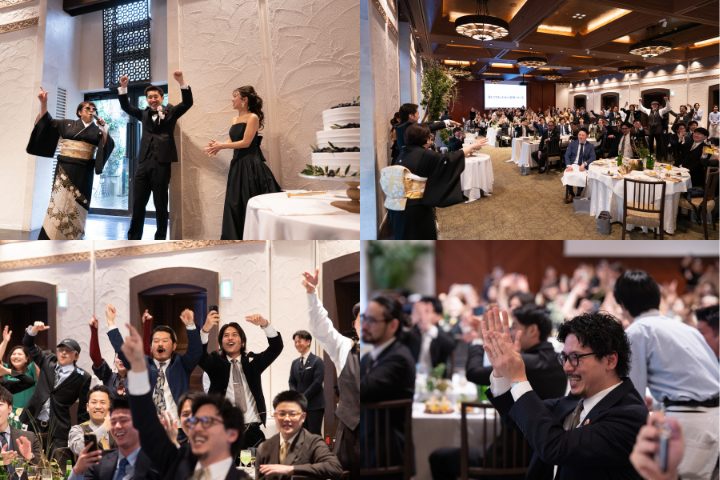 ウェルカムパーティーでゲストと笑顔溢れるウェディング 披露宴会場 : THE GRAND GARDENⅡ 挙式スタイル : 人前式 参列人数 : 100名 ーParty Reportー 今まで支えていただいたみなさまに ありがとうの瞬間をあつめ感謝を伝える結婚式を作りたい そのようにお話をいただいたおふたり ゲストとたくさん触れ合える時間をたいせつに おふたりの感謝をたくさん詰め込んだ 特別な一日をご紹介いたします ーFirst meetー まずはチャペルでのファーストミート お互いの晴れ姿に笑顔があふれます ここで おふたりが生まれてから今日までの 親御様からのたいせつな想いが綴られた 「JUST FOR YOU」という1冊の本が贈られます ひとつひとつの文字をゆっくりと読みすすめられる あたたかな時間が流れました 挙式前のおふたり写真をゆっくりとおさめ ファーストミート前に緊張しておられたお顔も おふたりで過ごすお時間の中で 少しずつ リラックスした表情に ーCeremonyー 挙式前はおふたりからのサプライズ 可愛らしい箱を皆さまにお選びいただきご案内します ご新郎様はご入場前に お父様からジャケットセレモニー お母様からブートニアセレモニーを おだやかなお時間を過ごされたあと ご入場へとすすまれます ステップを踏みながらご入場され 会場はあたたかな笑顔に包まれます 続いてご新婦様のご入場 バージンロードを歩まれる前に お母様からのベールダウンを受け ご新郎様のもとへ これまでの軌跡を想い ご親族の目にも涙がにじみます ここで挙式前にみなさまにお選びいただいた 小さな箱の中身の種明かし 中にはおふたりの誓いの指輪が ご新郎様側 ご新婦様側 それぞれひとつの箱に本物が入っています ご招待のみなさまおひとりおひとりがたいせつだから 選び当てていただいた方に たいせつな誓いの指輪をお運びいただきます それぞれひとことずつお言葉をいただき 指輪の交換 誓いの言葉は たいせつなご友人からの問いかけ式 それぞれ紡いでいただく言葉に 会場は感動とあたたかい笑顔に包まれ 誓いのキスを 結婚成立宣言ののち あたたかい拍手とバブルシャワーのなかご退場です ーWelcome Spaceー ウェルカムスペースにはおひとりおひとりの名前入りのエスコートボード お名前を探していただきお席にお進みいただきます みなさまの写真を自由に撮っていただけるよう チェキもご用意されました そしてウェルカムスペースではなんと おふたりがみなさまをお出迎え 思いがけないおふたりの登場に ゲストのみなさまも笑顔であふれます ご披露宴にさきがけ まずはウェルカムパーティーで乾杯 みなさまでお写真を撮られたりお話をされたり ご披露宴を前におふたりとのお時間をゆっくりと過ごされているのが印象的でした ーTable Cordinationー イエロー・アンティークピンク・グリーンを中心とし 流しテーブルに合わせたウッド調の植栽も使用し目線を上に シンプルな色味を中心にしながらも イエローなどの元気なビビットカラーが映える空間に テーブル上はゲスト同士の目線が合うように シンプルな花材で彩られています 新婦様手作りのプロフィールブックが みなさまをお迎えします オープニングムービーののちご入場 盛大な拍手のなか みなさまのお近くを通ってメイン席へ ウェルカムスピーチをいただき おふたりからのゲスト紹介のお時間 ご紹介を受けたみなさまも自然と笑顔になります 和やかな雰囲気のなか乾杯へ おふたりのまわりにはお祝いを伝えるゲストでいっぱい おふたりもお話をされながら各テーブルへご挨拶まわり 写真を撮られたりお話をされたり 終始明るい声で会場内は賑わいます 新婦様は妹様とご一緒に お席までおばあさまをお迎えに進まれ 3人で 新郎様はお姉様とそれぞれご中座へすすまれました ご中座の間にはプロフィールムービーを上映 懐かしいおふたりのお姿に ご家族もご友人も笑顔でご覧になられていました おふたりあらためてのご入場 新婦様のカラードレスはシックなブラックのドレスで 鮮やかなカラーのブーケが差し色になり 新婦様の明るい笑顔により映えます ウェディングケーキなベリーをあしらったケーキで おふたりの前には入り切らないほどのご友人カメラマンで溢れ お席の後方もお祝いのお声で賑いました ケーキ入刀ののちはサンクスバイト おふたりのお母様をご指名されました お母様方からもひとことずついただき 笑顔溢れる和やかなお時間となりました みなさまで一緒に楽しむゲームの導入では 新郎様のお母様が ラップで会場を盛り上げます 明るい雰囲気のまま ゲームのお時間へ テーブル対抗で繰り広げられるゲームに 一体感溢れる会場内 優勝されたテーブルのみなさまに 豪華景品を贈られました フリーフォトタイムでは メインテーブルまわりで たくさんのお写真をおさめられました 新婦様からのお手紙ののち 感謝の記念品として生まれたときの体重米とお花束を それぞれの親御様へお渡しになりました ご両家を代表して 新郎様のお父様から 続い