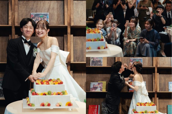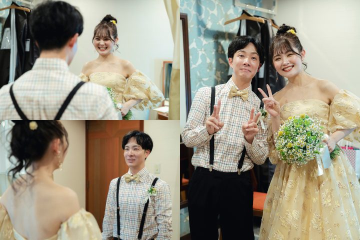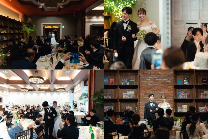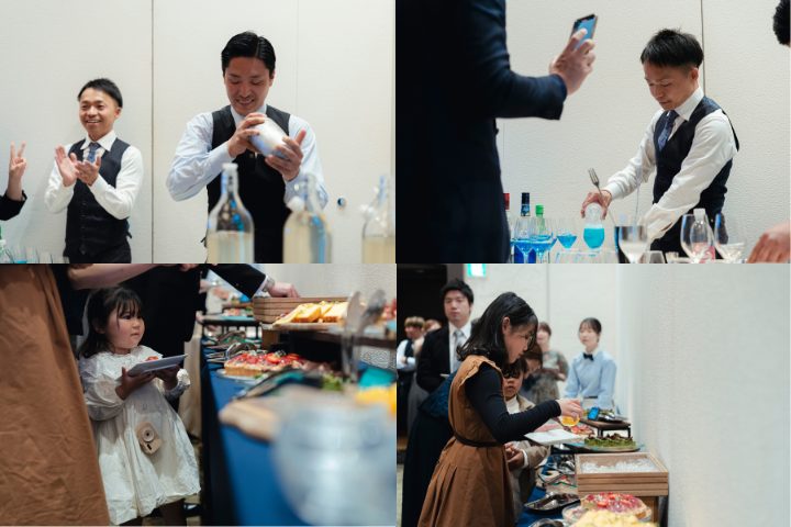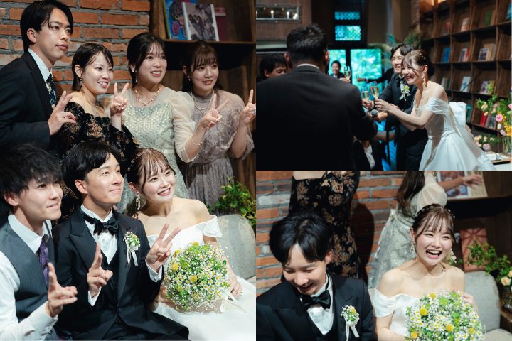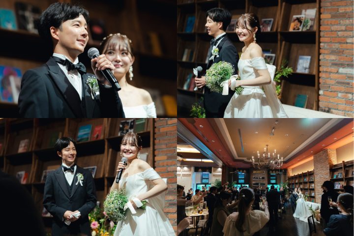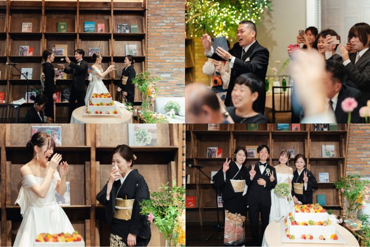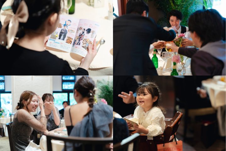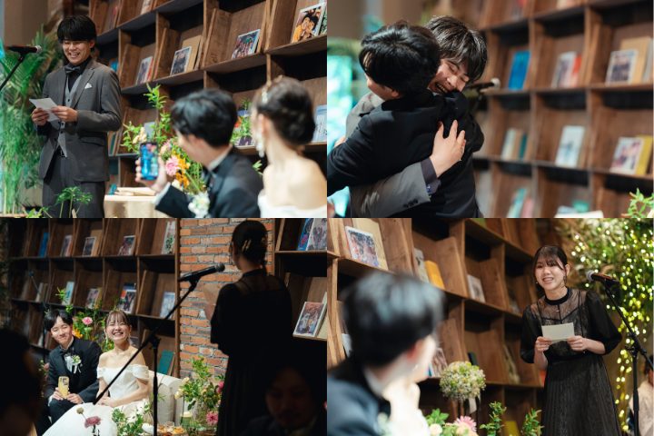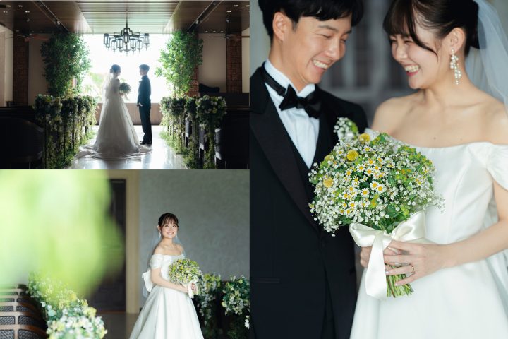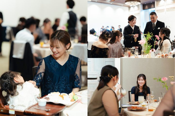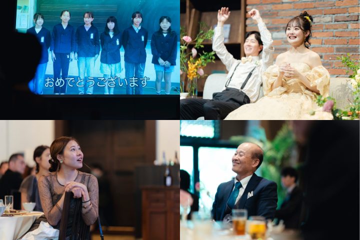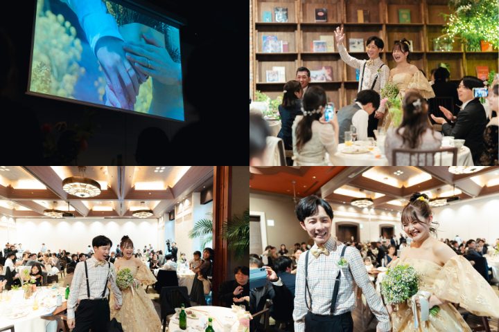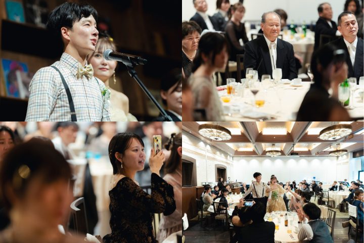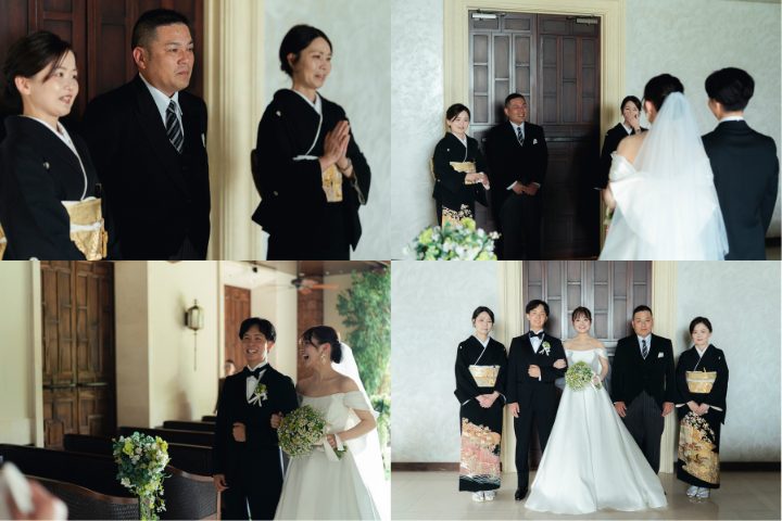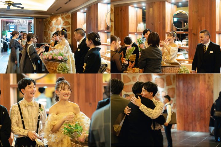 【NEW!】「感謝を伝えるおもてなし」一緒につくるウェディング 披露宴会場 : THE GRAND GARDENⅡ 挙式スタイル : 人前式 参列人数 : 94名 お仕事の関係で出会われたおふたり 親御様やご家族への感謝を伝え みなさまで一緒に楽しく過ごしたい そんな思いで作られた 新緑のなかで過ごす あたたかいガーデンウェディングをご紹介いたします ーWedding dayー 穏やかな風が吹く5月 鮮やかな新緑が ホテルの周りを彩ります ーFirst meetー チャペルでのファーストミート 今日まで内緒ですすめてきた 特別なお姿 初めて見るお互いのお姿に笑みがこぼれます そして新婦様から新郎様へ サプライズでコルクボードの贈り物 新郎様の素敵なところをたくさんしたためたメッセージがたくさん おふたりがお互いを想う あたたかい時間が流れます ーFamily meetー そのまま おふたりの親御様とのファミリーミート お互いが涙ぐみ 今日の門出をお祝いするような ご家族の素敵なお時間となりました おふたりはプライベートガーデンでも ゆっくりとおふたり写真をおさめます ーWelcome Spaceー ウェルカムスペースは鮮やかなウェルカムボードと お二人が撮りためたお写真や思いでのお品がみなさまを迎えます プリントシール機もご用意され おふたりへのお祝いのお言葉やお写真で ボードが埋め尽くされていました ーCeremonyー 挙式は新緑が彩るイングリッシュガーデンにて ウェルカムスペースでみなさまにお持ちいただいた スイッチングレターをみなさまに読みすすめていただくことから 挙式がスタートします そしてご新郎様のご入場 お母様から ジャケットセレモニーをいただき みなさまの前へすすまれます 続いて新婦様のご入場 バージンロード前で お母様からベールダウンを受け お父様とご一緒に ゆっくりと新郎様のもとへと歩まれます たいせつな指輪は 新婦様の弟様に リングベアラーとしてお運びいただきます おふたりにお祝いのお言葉をいただき あたたかいご家族の絆が見える 穏やかなお時間となりました ベールアップののち 誓いの言葉 結婚証明書は ウェルカムスペースでゲストのみなさまに1本ずつ付けていただいた ゲスト参加型のもの おふたりがお仕上げをしてお披露目です 誓いのキスののち結婚成立宣言 おふたりはリーフシャワーとあたたかい拍手のなか挙式の結びとなりました ナチュラルガーデンがテーマ 新婦様のお好きなオレンジ・アプリコット系をベースとした ナチュラルで優しい雰囲気で 会場をデザインしました 挙式を結び ゲストのみなさまはご披露宴会場へ ウェルカムスペースでみなさまの手に渡った おふたり手作りのプロフィールブックをご覧になられたり ご用意されたビールやドリンクで乾杯されたり 同じテーブルになった 久しぶりに合うご友人や 親しい職場のみなさま リラックスされたご様子で新郎新婦のご入場を待ちます おふたりが作られたオリジナルのオープニングムービーののち いよいよおふたりのご入場です 新婦様はベールを外され ヘアアクセサリーをあしらった新たな装い 弾けるような笑顔の新婦様を より明るくしてくれます 新郎様からのウェルカムスピーチをいただき おふたりからお越しいただいたゲストのみなさまのご紹介 そして おふたりから乾杯のご挨拶 乾杯後のメインテーブルには おふたりへお祝いの言葉を伝えるゲストの方々でいっぱい 順番におふたりを囲んで写真撮影がはじまります それぞれのご友人代表の方よりあたたかいスピーチをいただき ケーキ入刀 ファーストバイトへとお時間はすすみます 幸せな瞬間に ゲストのみなさまもカメラを持っておふたりの周りへ 鮮やかなフルーツをあしらったウェディングケーキが より華やかにおふたりを彩ります 続いて5月の母の日にちなんで それぞれの親御様へ感謝のサンクスバイト 少し照れくさそうに でもとても幸せな笑顔を浮かべるみなさま カメラを構えるご家族やゲストのみなさまも とても幸せそうに笑顔を浮かべていらっしゃるお姿が印象的でした お色直しのエスコートには 新婦様はお祖父様とお祖母様 新郎様はお祖母様をご指名 あたたかい大きな拍手のなか それぞれ会場をあとにされます 会場ではお食事を楽しまれたり 懐かしいお話で盛り上がるなか お支度が整ったおふたりのお部屋ではセカンドミートが お色直しのご準備も内緒ですすめられていたおふたり ヘアスタイルやドレスもがらりと雰囲気を変えられ 華やかな笑顔が映えるお衣装の新婦様 新郎様もドレスに合わせた色合いでよくお似合いでした おふたり手作りのプロフィールムービーを上映したのち あらためてご入場 大きな拍手のなか おふたりの明るい笑顔がより会場を盛り上げます ここでおふたりへサプライズムービーのプレゼント 学校関係のお仕事のおふたり 職場である学校の生徒さんや先生から お祝いのムービーです 会場のみなさまもあたたかい笑顔で映像をご覧になられます その後 会場では新おふたり共通のご友人である バーテン