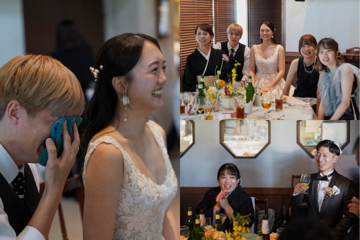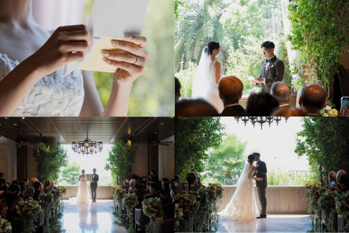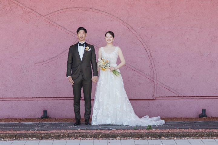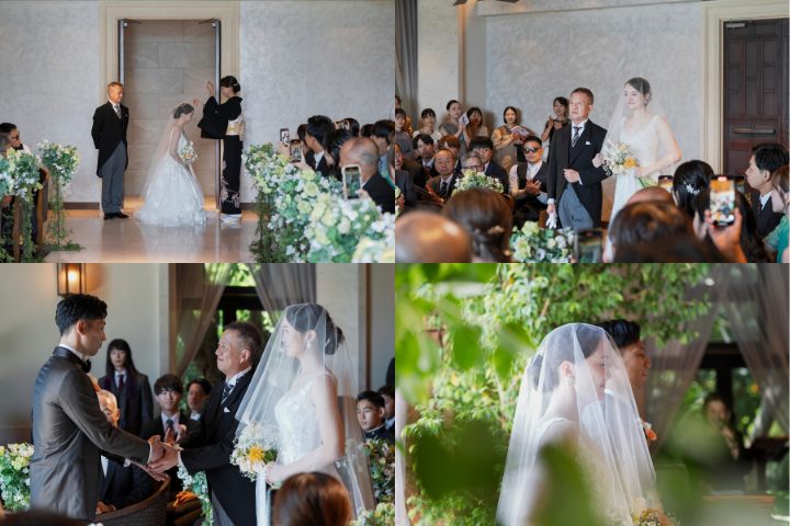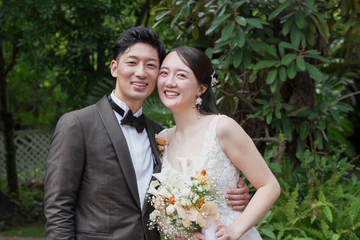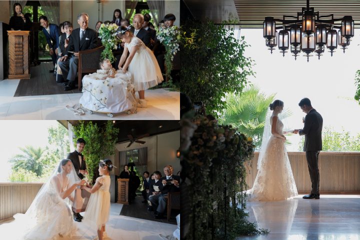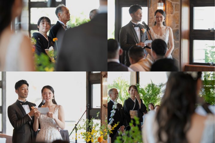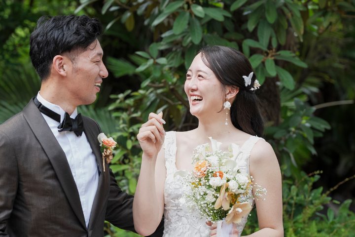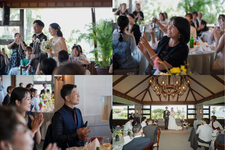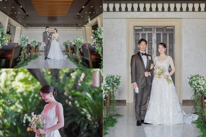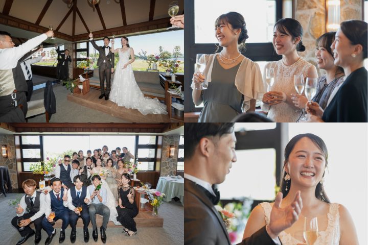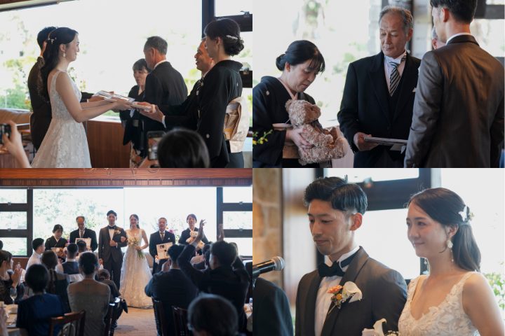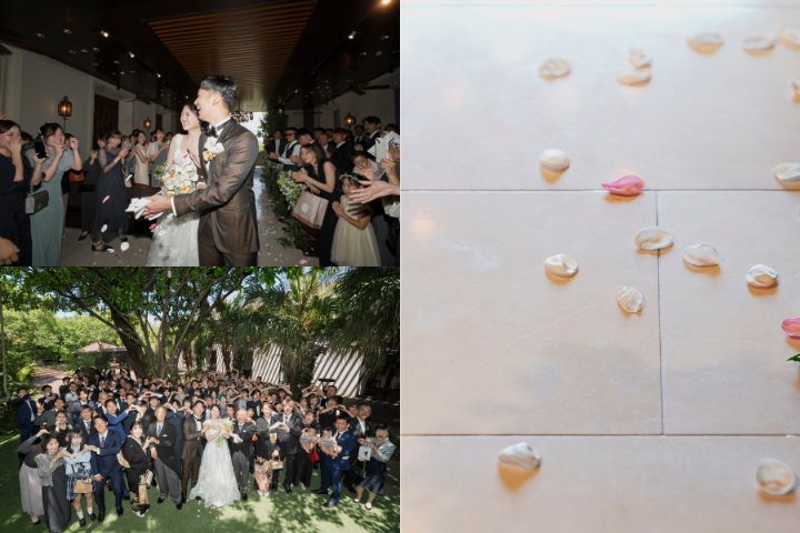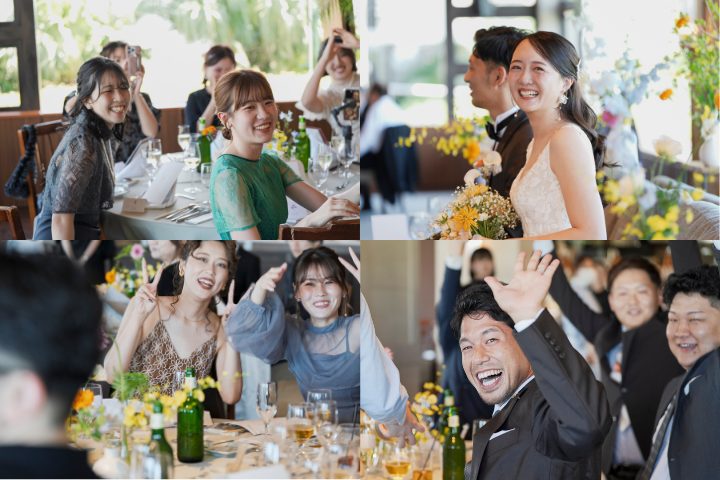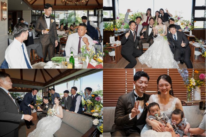 【NEW!】ゲストと近くで過ごす、笑顔あふれるウェディング 披露宴会場 : THE GRAND BEACH 挙式スタイル : 人前式 参列人数 : 101名 明るい笑顔が印象的なおふたり お互いの時間をたいせつに過ごしながら ご家族や ご友人 まわりのみなさまの近くで感謝を伝える時間にしたい そんなおふたりがつくる あたたかなウェディングをご紹介いたします ーWedding dayー 高く青い空が広がる8月のルイガンズ プールの水面に映る景色も鮮やかに より開放的な空間が広がります カーテンで仕切られたお部屋で 別々にお支度をされたおふたり ーFirst meetー ルイガンズのピンクウォール前でファーストミート お互いのお姿にあふれる想い 素敵な笑顔でのお披露目となりました おふたり写真はチャペルでもゆっくりと 自然光が明るく照らすグリーンのチャペルでは おふたりのお姿もいっそう華やかに彩ります ウェルカムスペースにはウェルカムボードと思い出の写真たち ご友人からの贈り物である似顔絵ボードや華やかなお花 そして お好きな色をキャンバスに描いていただく ウェディングキャンバスも 久々の再会もあり プライベートな空間でゆっくりと過ごされているのが印象的でした そして挙式のお時間へ まずはご新郎様のご入場 お父様からジャケットセレモニーを お母様からブートニアセレモニーを受け みなさまの前へ進まれます 新婦様のご入場は お母様からのベールダウンを受け お父様とご一緒にバージンロードを進まれ 新郎様へバトンタッチ おふたりがみなさまの前にお揃いになりました かわいいリングベアラーにリングをお届けいただき 指輪の交換 誓いの言葉はお互いに読み上げられます 結婚証明書は ウェルカムスペースでみなさまに描いていただいた ウェディングキャンバス おふたりが仕上げられ お披露目されます 温かい拍手と華やかなフワラーシャワーのなかご退場 ガーデンで集合写真をおさめ 挙式の結びとなりました ーFlower Cordinationー カラフルポップなイメージがテーマ グリーンもバランスよくあしらい ボリュームのある空間に 動きのあるお花が引き立つよう花瓶を使ったデザインを使いながら 明るいおふたりにぴったりのコーディネートに ーPartyー ゲストテーブルにはプロフィールブックやお料理のメニュー そしてお席札の裏にはおひとりおひとりにあてた 手書きのメッセージ ゲストのみなさまはひとつひとつ確認されながら おふたりのご入場までのお時間を過ごされていました おふたり手作りのオープニングムービーにつづき新郎新婦様のご入場 新婦様は柔らかい笑顔がいっそう華やぐ ダウンスタイルにヘアチェンジされました ウェルカムスピーチののち ゲスト紹介 ゲストのみなさまも手を上げたりされながらご紹介にお応えいただき 会場はいっそう盛り上がり 笑顔に包まれる時間となりました 乾杯後はゲストのみなさまとお写真タイム おふたりの周りはお祝いを伝える方々でいっぱい その後もご友人からのスピーチやビデオレター テーブルラウンドや記念撮影など それぞれのお時間も楽しみながら おふたりともゆっくりと会話をされる 穏やかなお時間が流れます そしてケーキ入刀 フルーツをたっぷりとあしらったウェディングケーキが 会場に華を添えます ファーストバイトでは巨大なスコップも登場し おふたりらしい演出に会場は盛り上がります プロフィール映像はそれぞれのご親族のお席で視聴 懐かしい写真やメッセージに感極まる場面も ご家族で過ごす あたたかい時間となりました その後はメインテーブルでお写真を撮られたり お話をされたり おふたりも自由に会場を回られながら過ごすフリータイム おふたりの周りは常にゲストのみなさまで溢れています 余興のお時間としておふたりがご準備されたのは たいせつなみなさまに豪華賞品をご用意された ”オールスター感謝祭” スクリーンを使って本物のように作り込まれたゲームに みなさまとても楽しみながらゲームにご参加されていました 続くお手紙のお時間は 新郎様 新婦様それぞれに 親御様へ想いをお届けになります 記念品には小さな頃の写真と感謝状 ウエイトベア ご両家代表謝辞 新郎様の謝辞ののちご退場 ご披露宴の結びとなりました お互いや周囲をたいせつにされるおふたりがつくった ゲスト全員で楽しみながら過ごすいちにち ご歓談や写真の時間 余興のお時間など みなさまと近い距離でお話をしたり 言葉や笑顔を交わすお時間をたっぷりとつくられた おふたりのお人柄があふれる素敵なお時間でした おふたりの末永いお幸せを スタッフ一同お祈り申し上げます