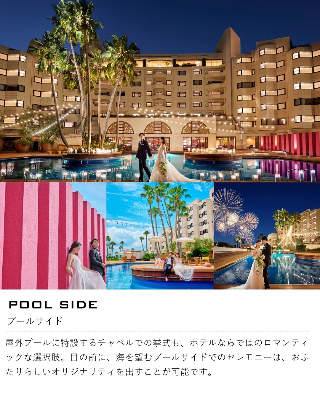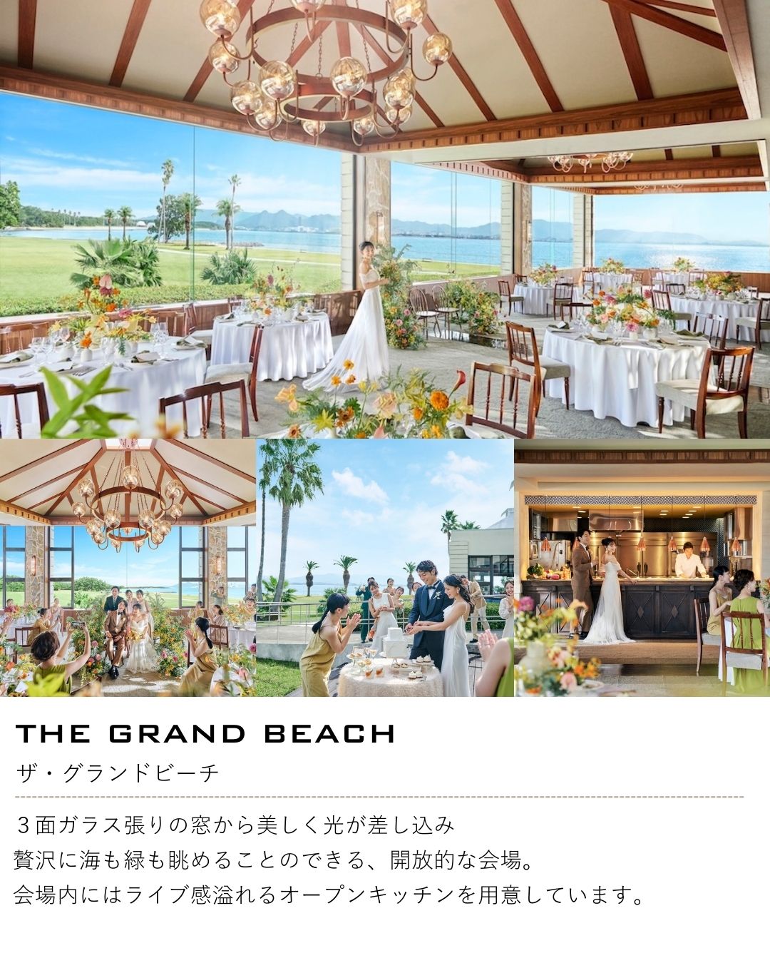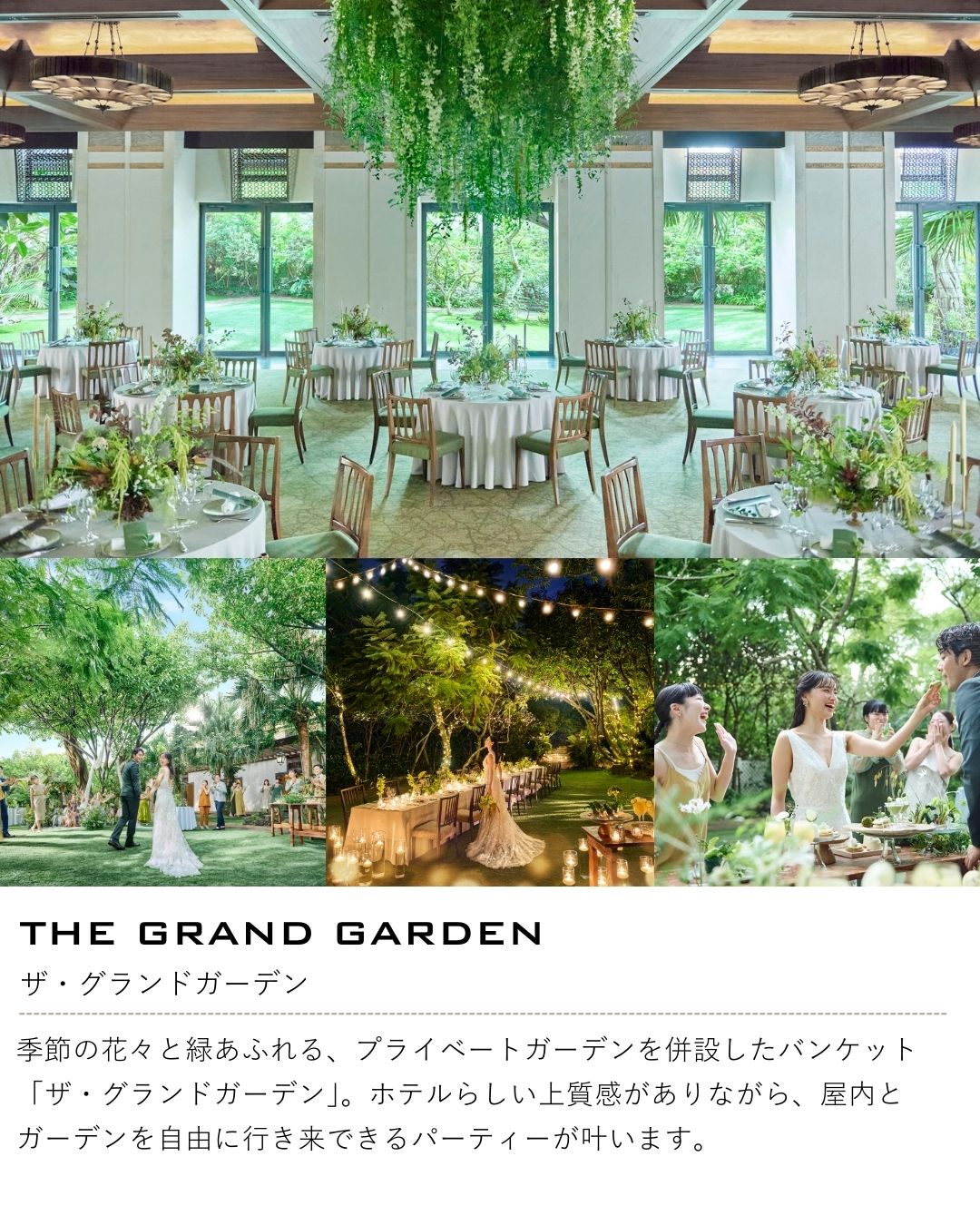 王道のウェディングはもちろん、ガーデンやビーチがおふたりらしいウェディングを実現。