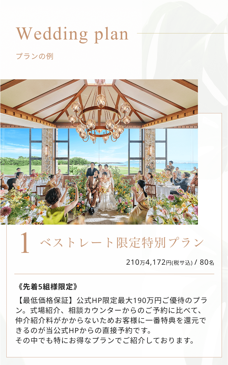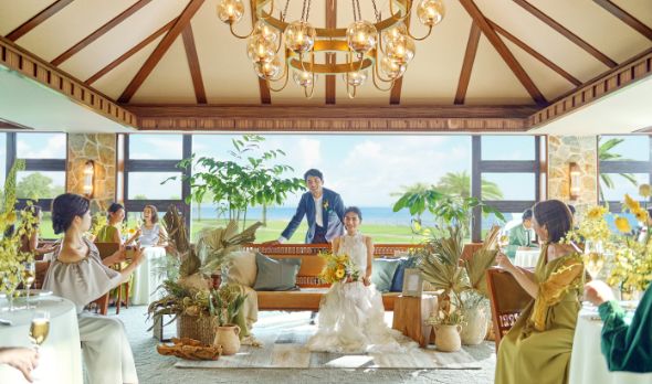 ザ・ルイガンズ.でしか叶わない自分たちらしいオリジナルウェディングが叶う。輝く海とヤシの木がなびく本物の自然を背景に、非日常的な空間がおふたりのウェディングの舞台となります。
