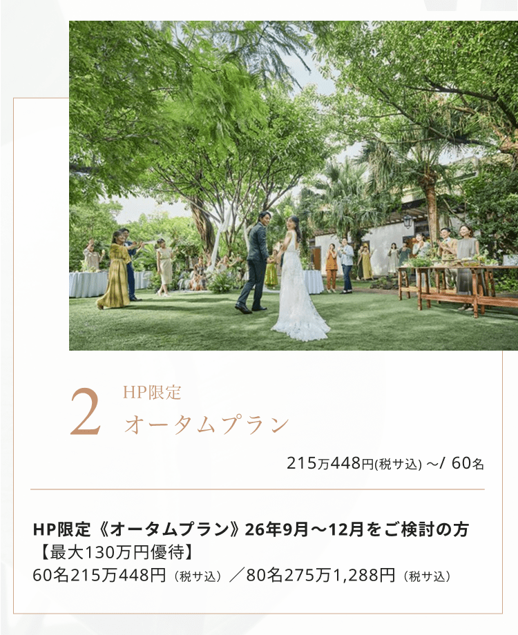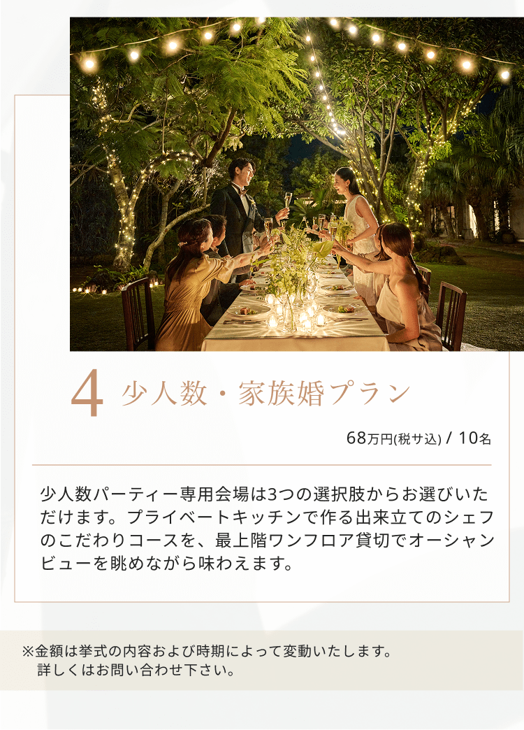 ザ・ルイガンズ.スパ & リゾートは少人数でご検討の方も大歓迎です