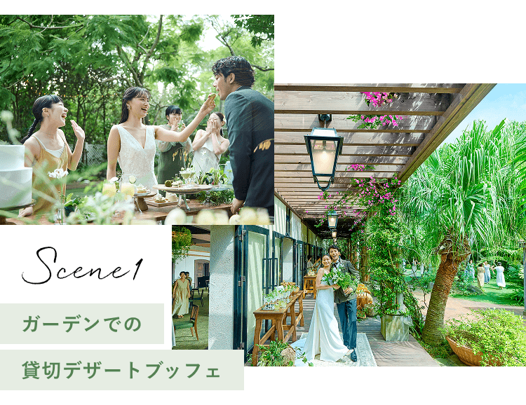 ガーデンでデザートブッフェやフォトタイムでゲストと一緒に盛り上がれること間違いなし。